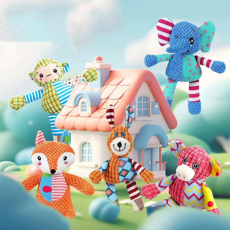 犬と猫向けのインタラクティブぬいぐるみおもちゃは、楽しい音と柔らかな感触でペットを夢中にさせます。